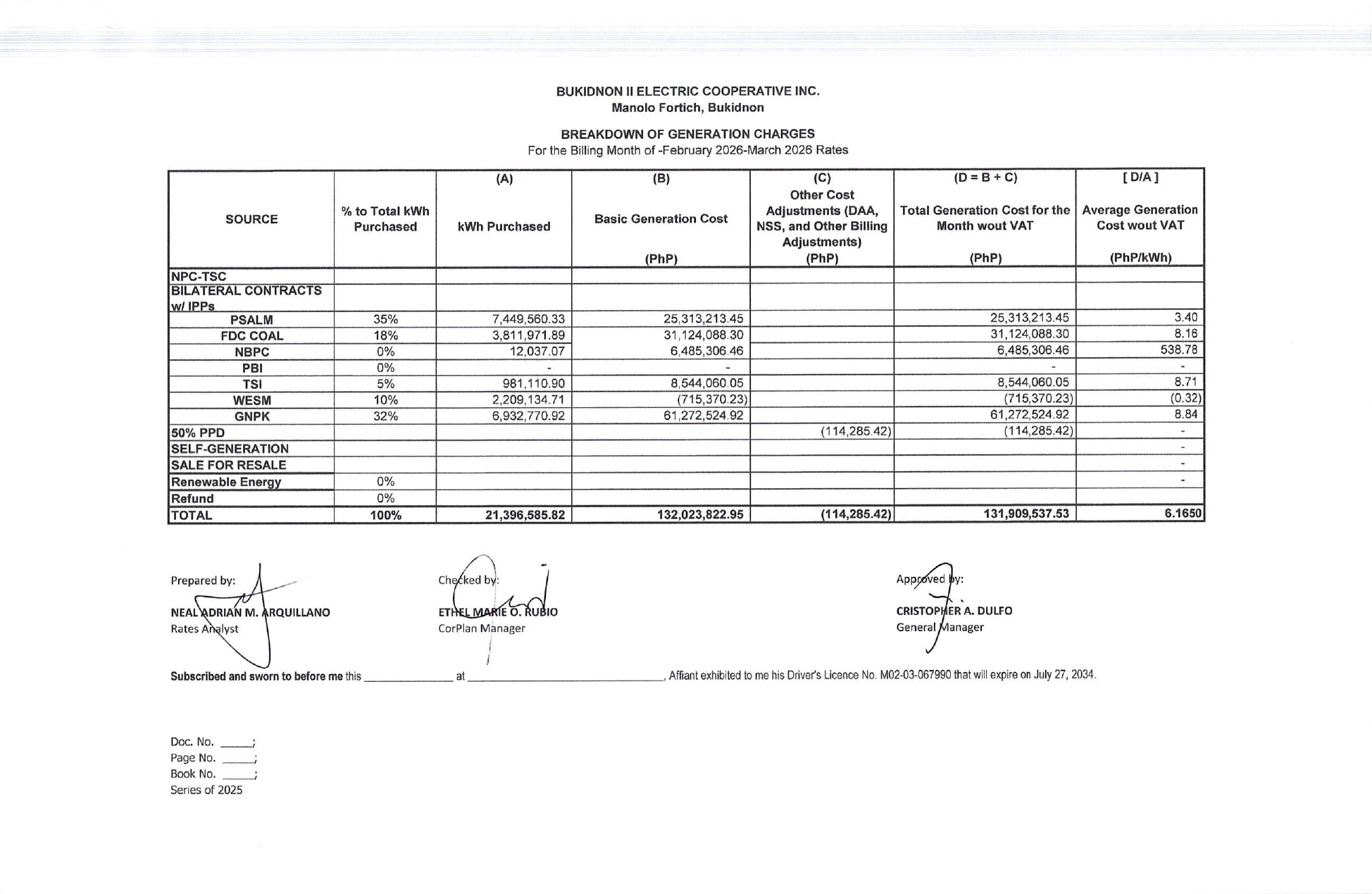Breakdown of Generation Charges-February 2026