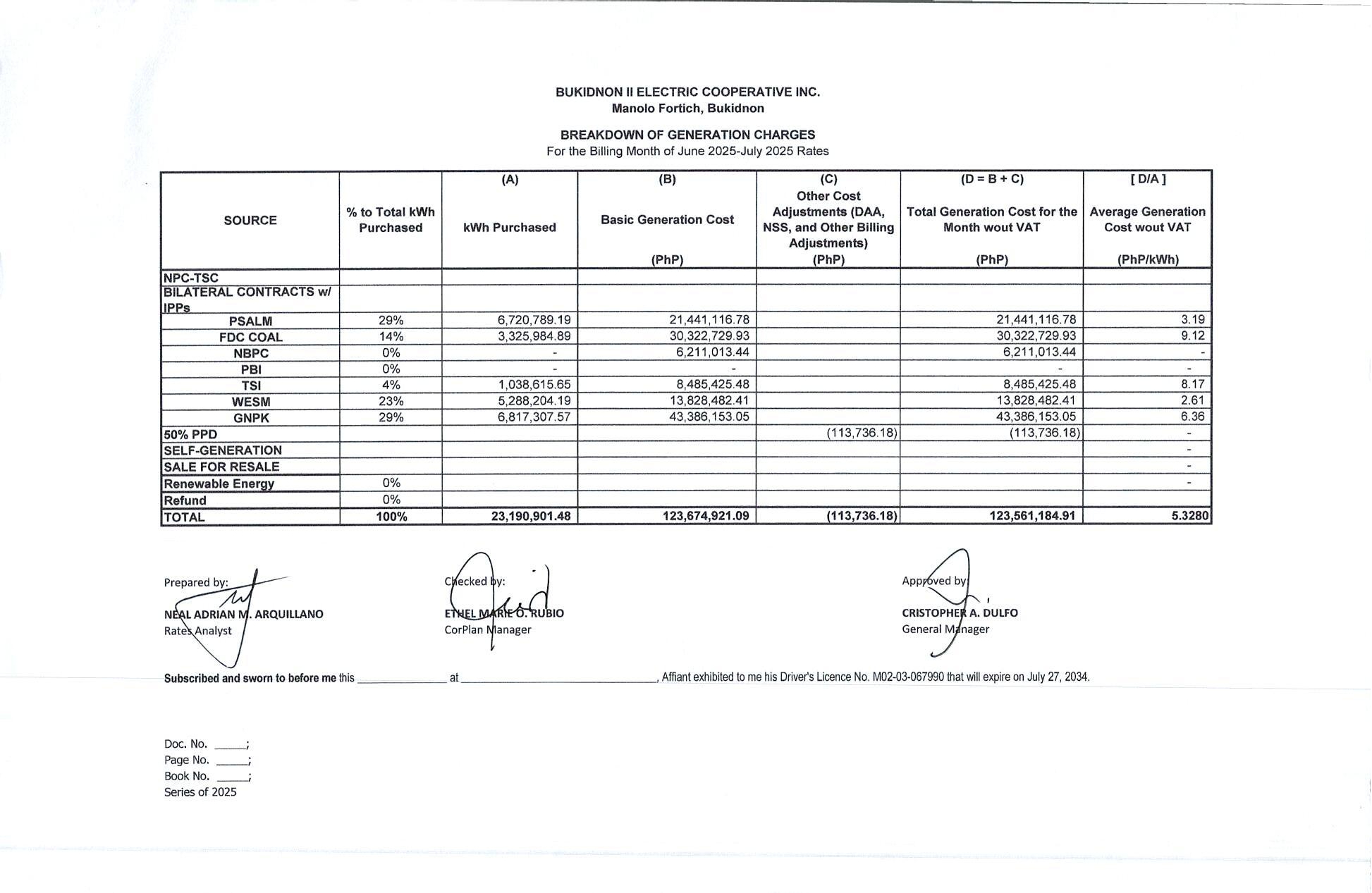 Breakdown of Generation Charges June 2025
