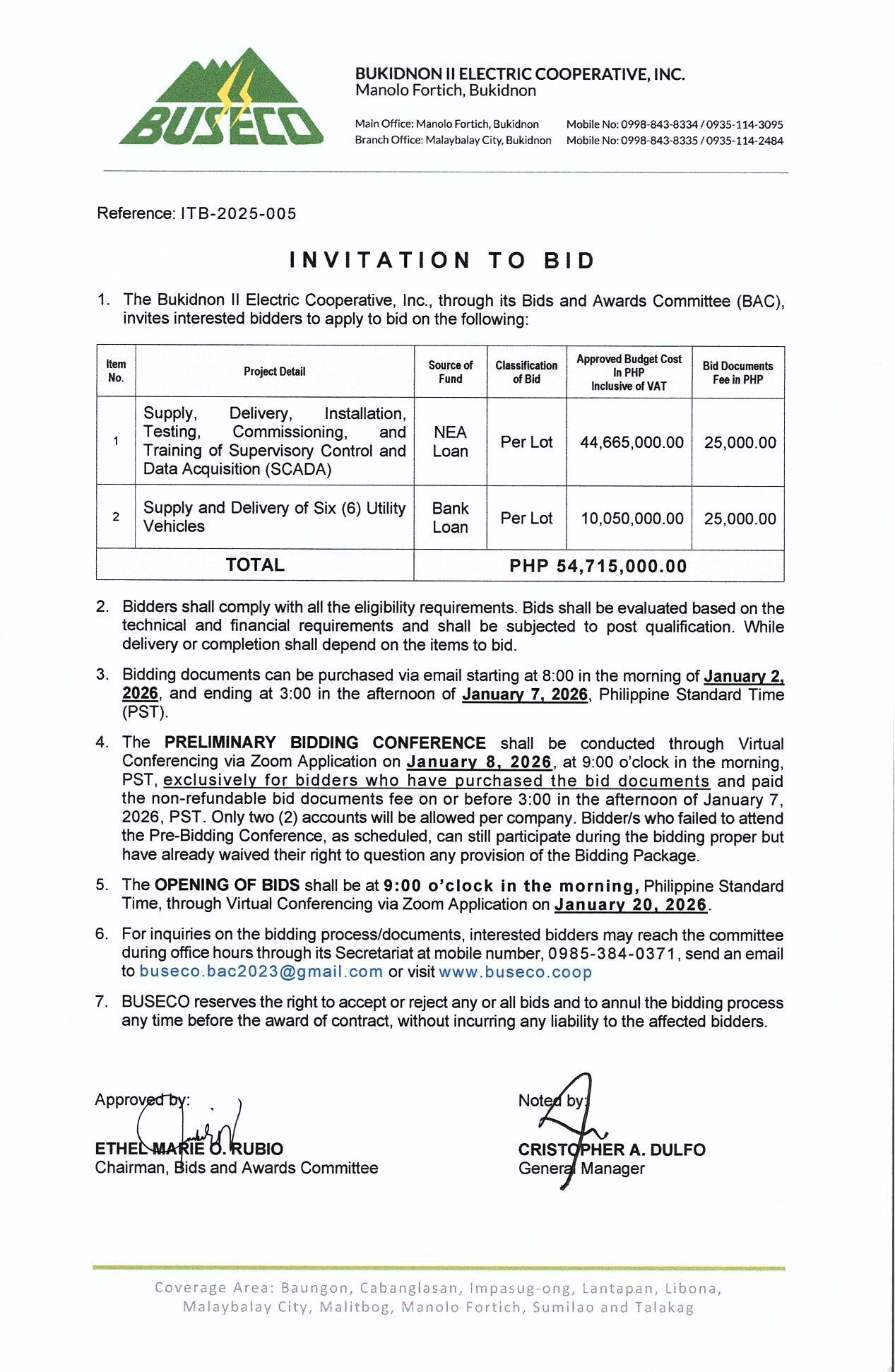 INVITATION TO BID ITB-2025-005 Supply, Delivery, Installation, Testing, Commissioning, and Training of Supervisory Control and Data Acquisition (SCADA)