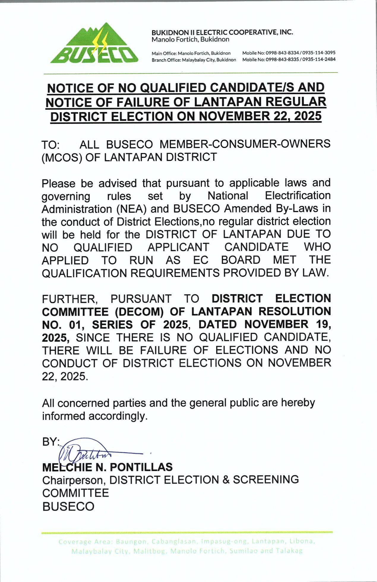NOTICE OF NO QUALIFIED CANDIDATES DISTRICT OF LANTAPAN