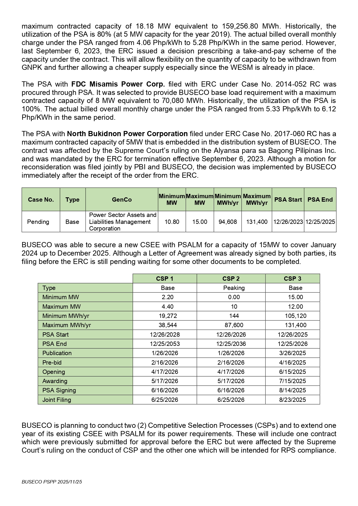 POWER SUPPLY PROCUREMENT PLAN 2025