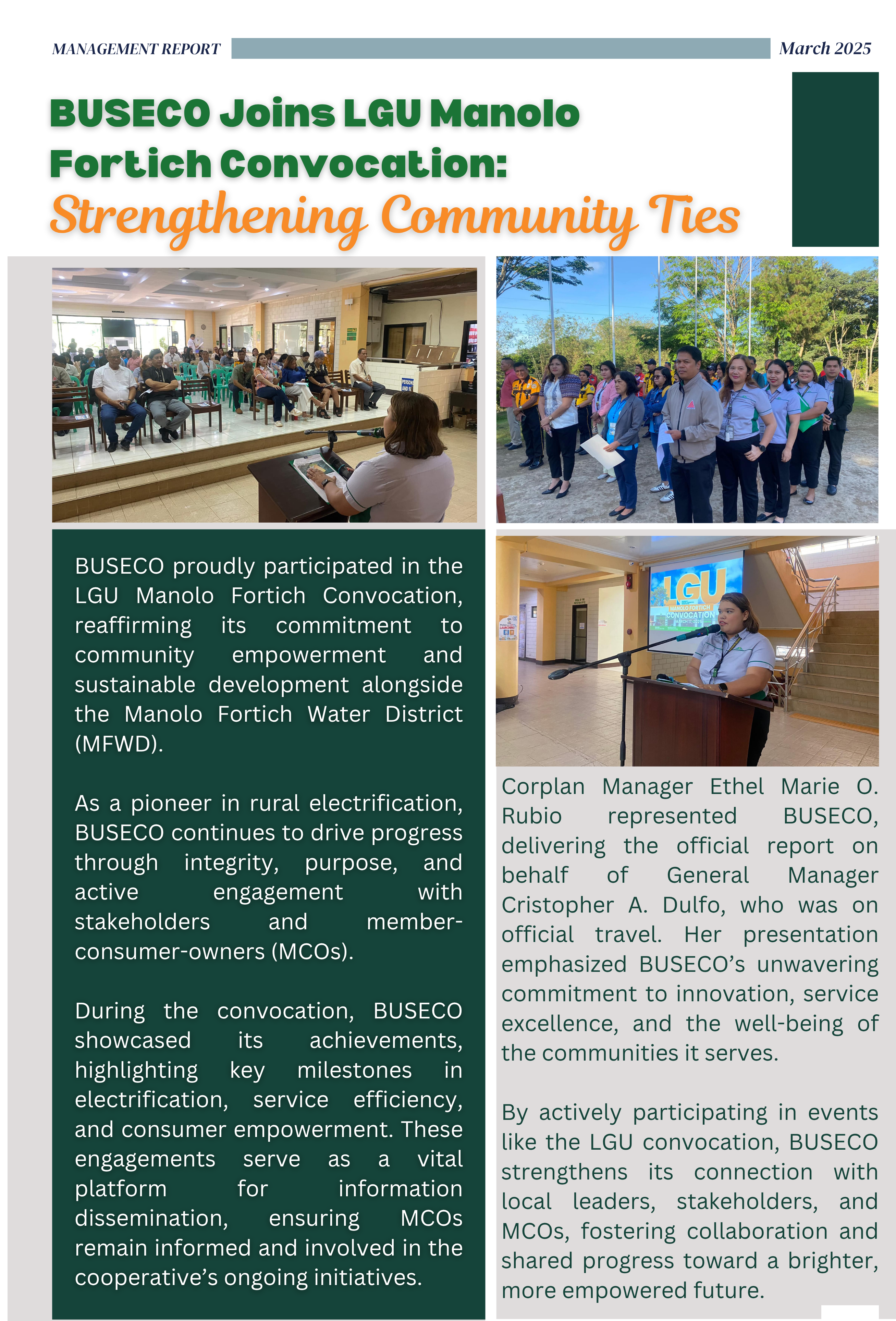 BUSECO Joins LGU Manolo Fortich Convocation: Strengthening Community Ties