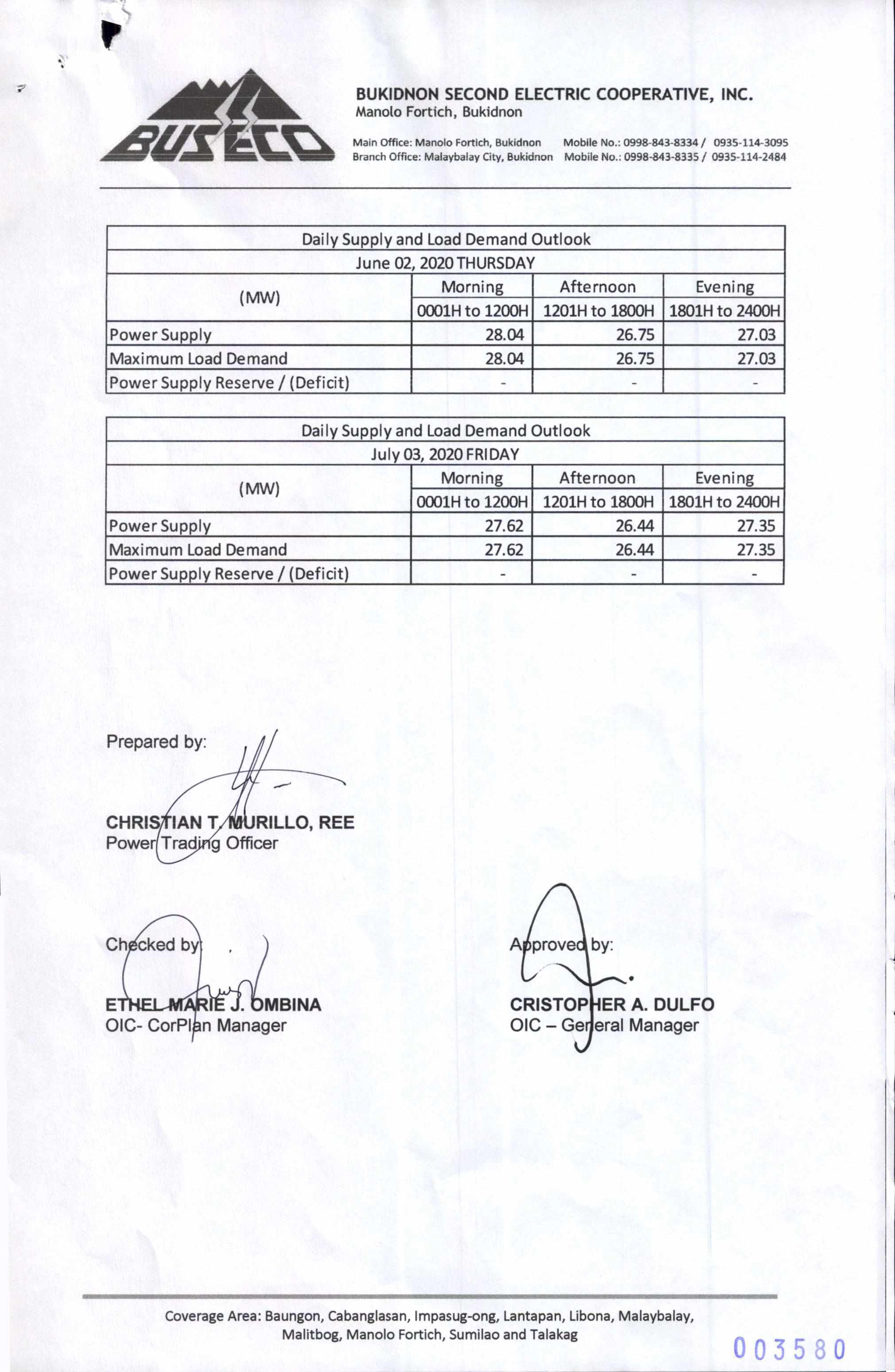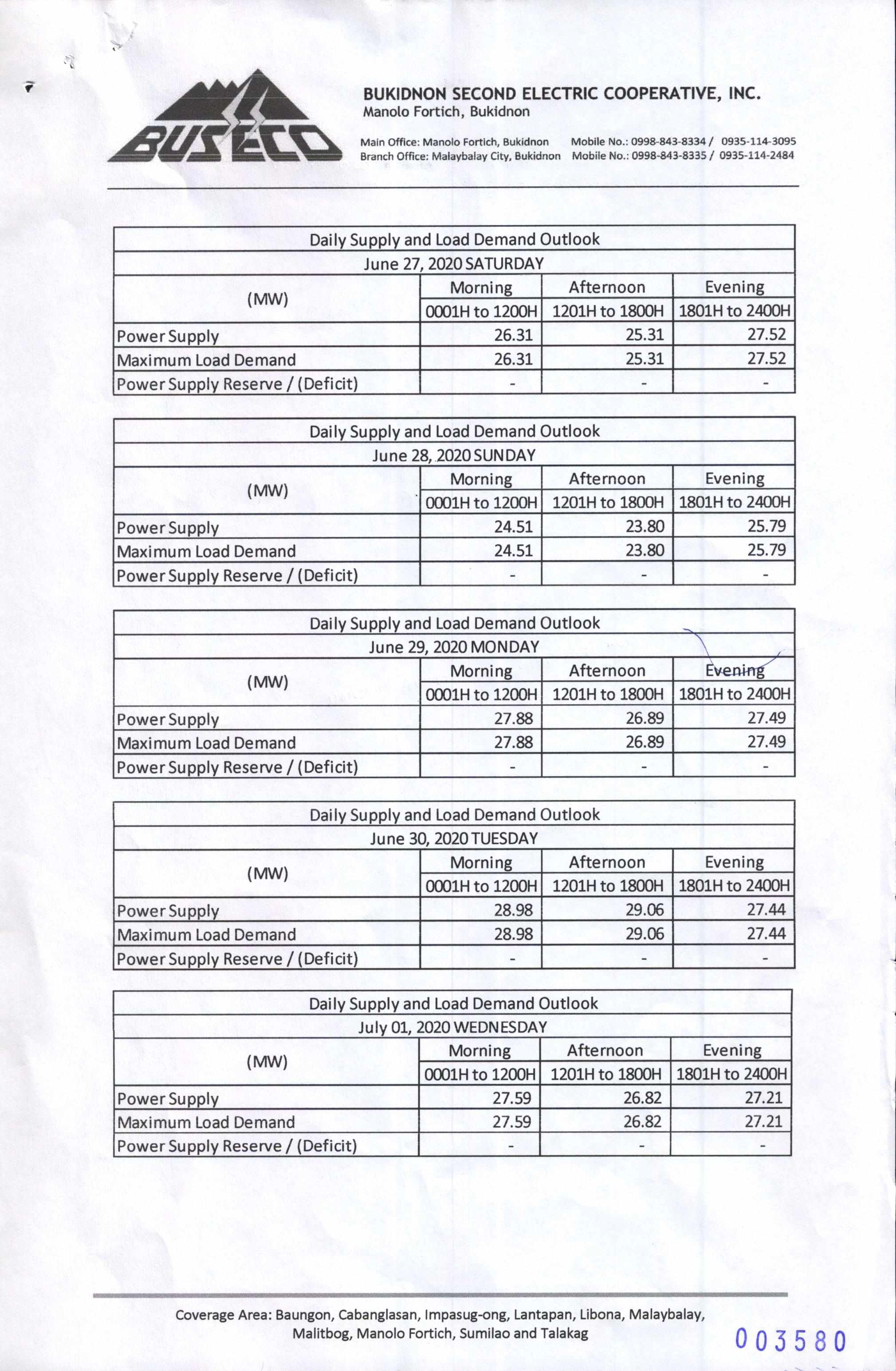 Daily Supply and Load Outlook (June 27- July 03, 2020)