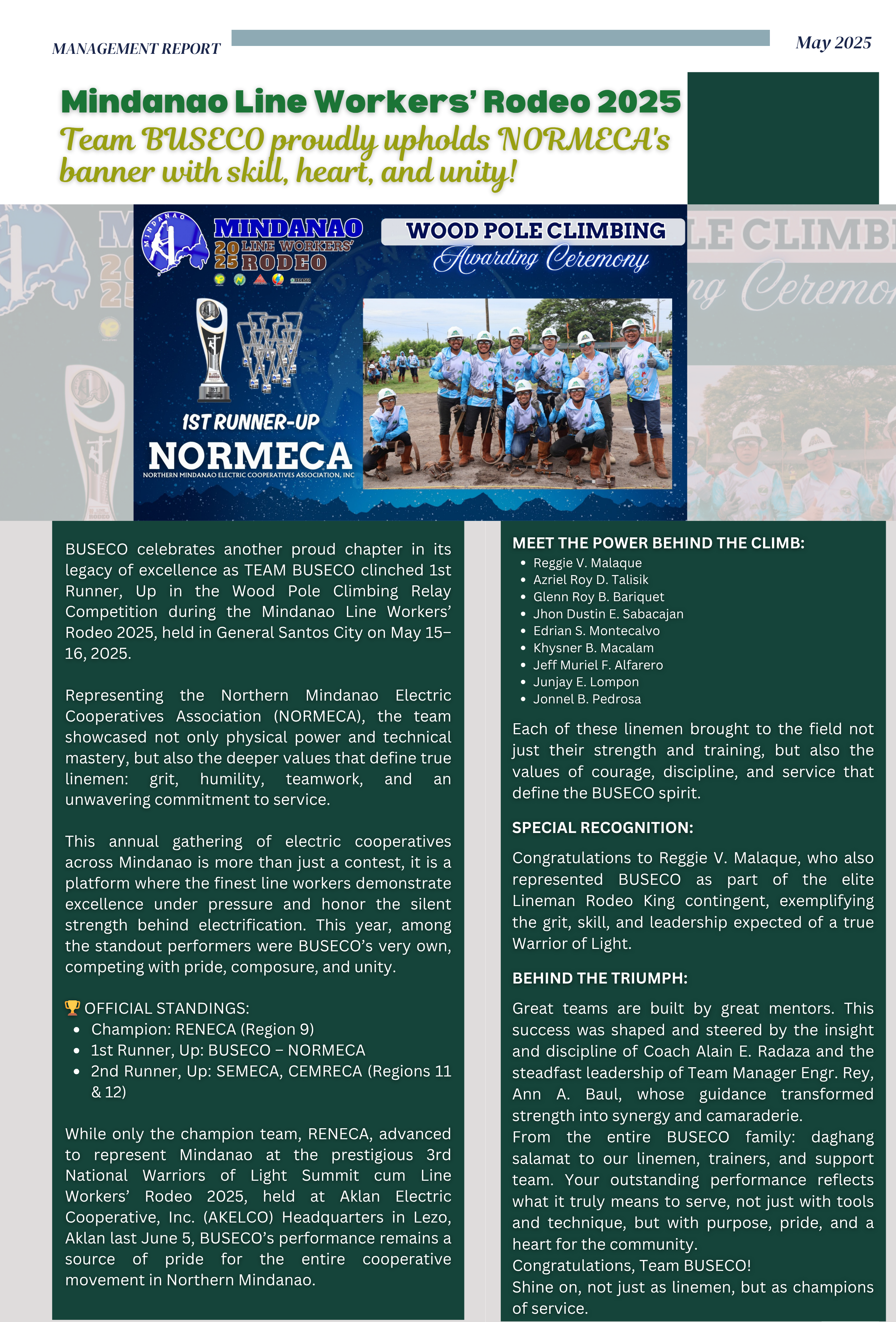 Mindanao Line Workers' Rodeo 2025: Team BUSECO proudly upholds NORMECA's banner with skill, heart, and unity!